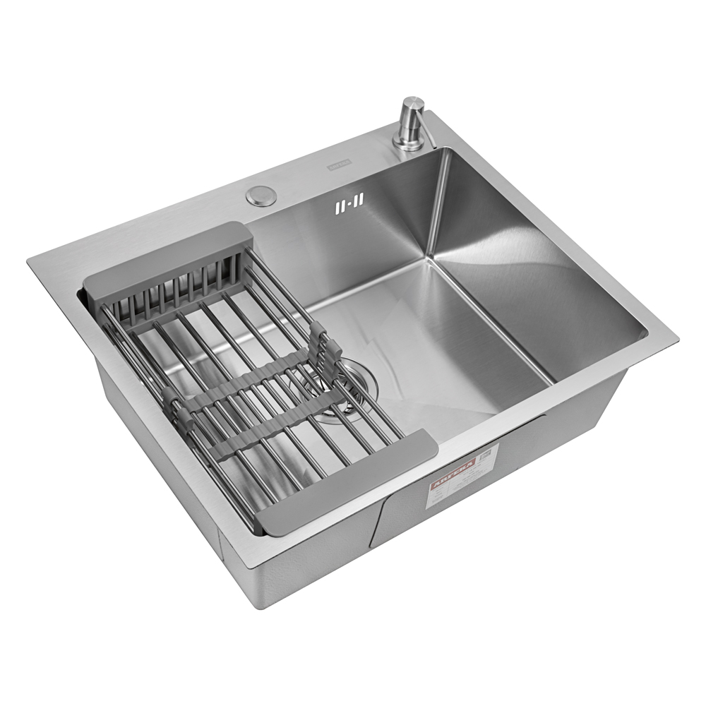 Комплектация: Кухонная мойка, телескопический коландер, дозатор для жидкого мыла, сливная арматура
