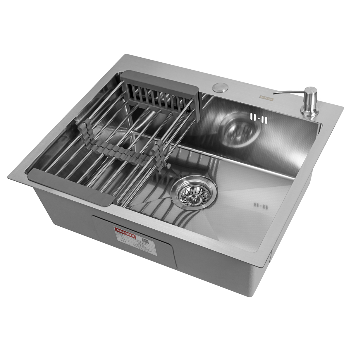 Комплектация: Кухонная мойка, телескопический коландер, дозатор для жидкого мыла, сливная арматура