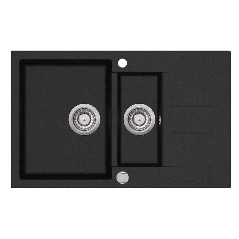 Мойка гранитная AquaSanita SQT 151 Размер мойки: 800х500 Размер чаши: 330х436х200, 160х345х120 В комплекте: сливная арматура с клапаном автоматом