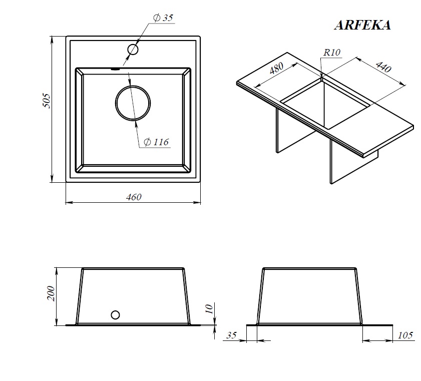 | Комплектация: | Мойка, сливная арматура |